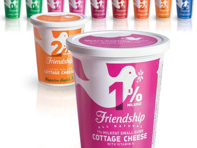 A packaging redesign for Friendship Dairies cottage cheese was a much needed redefining of the brand aesthetic and tone. This was an opportunity to make an otherwise boring and commodity-driven product sold to an aging consumer become relevant and new again.